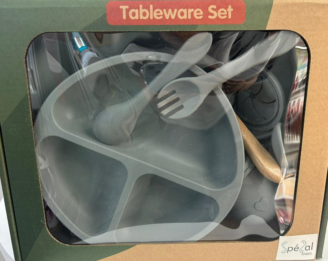 Silicone Baby Feeding Set 9 pieces– Complete Self-Feeding Set with Suction Plate, Silicone Bib, Long feeding spoon & fork, Wooden hand Spoon & Fork, Sippy Straw cup, Flexible Snack cover, High Raised Suction Bowl– Encourage Independence, Healthy Eating in Infants and Toddlers