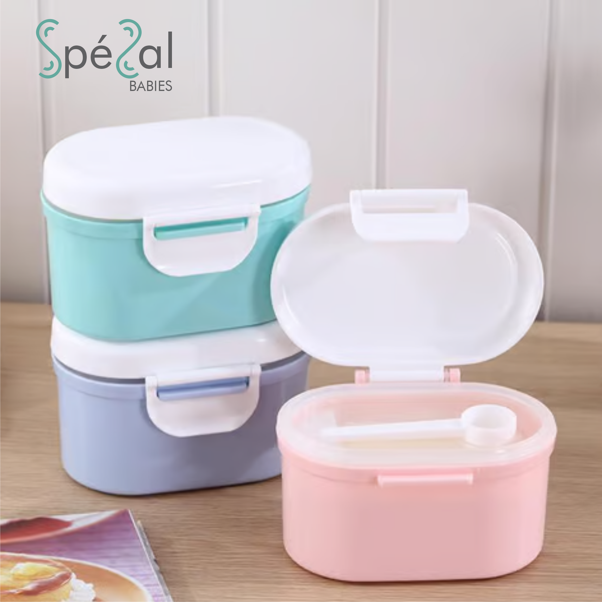 SpéSal Baby Formula Dispenser with Snap-On Lid for On-the-Go Feedings, Milk Powder Dispenser for Traveling with Infant, with Spoon, Pink and Green
